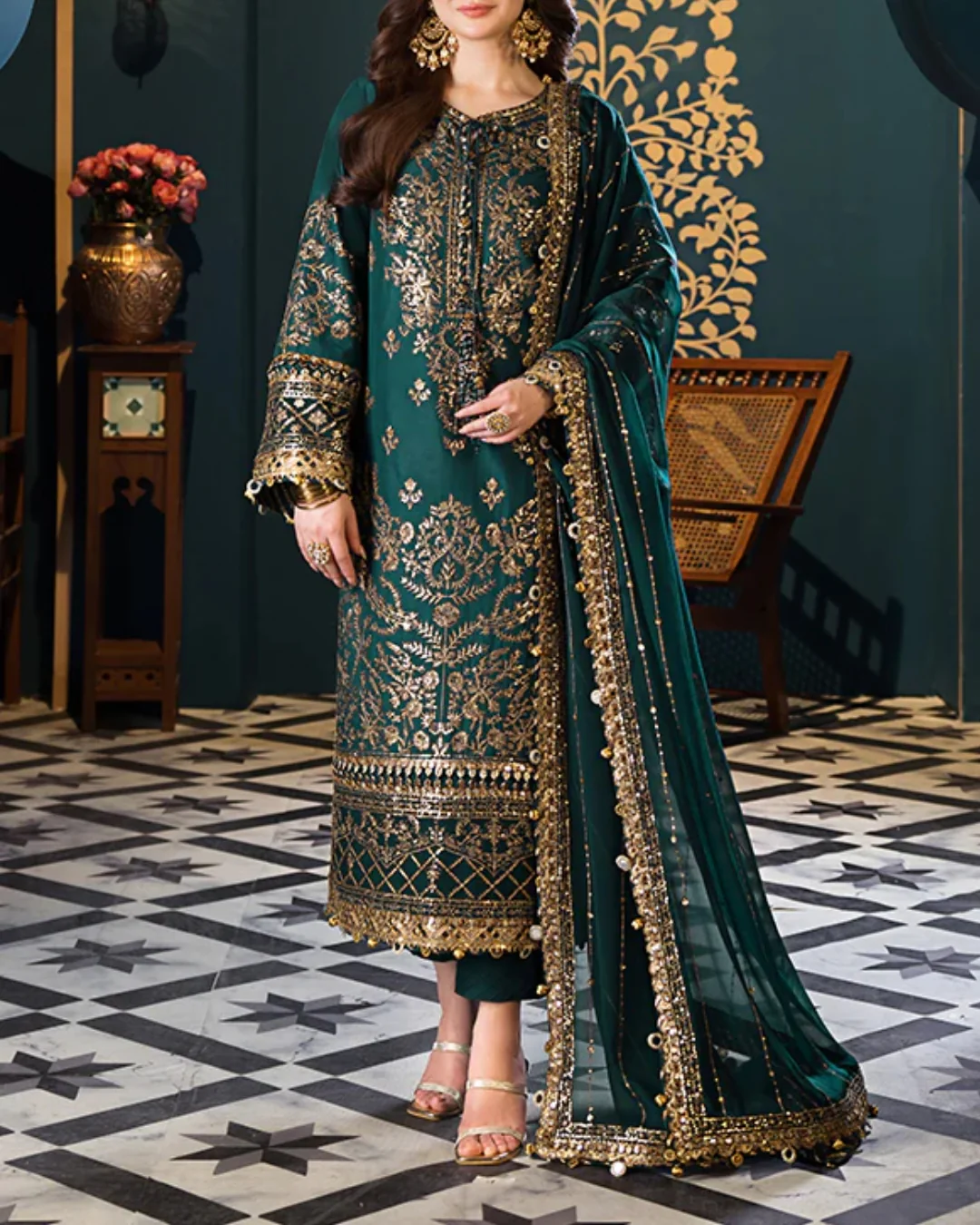 Fabric:Chiffon Shirt | Chiffon Dupatta | Malai Trouser Embroidery:Front + Neck + Border EmbroideredBack +...