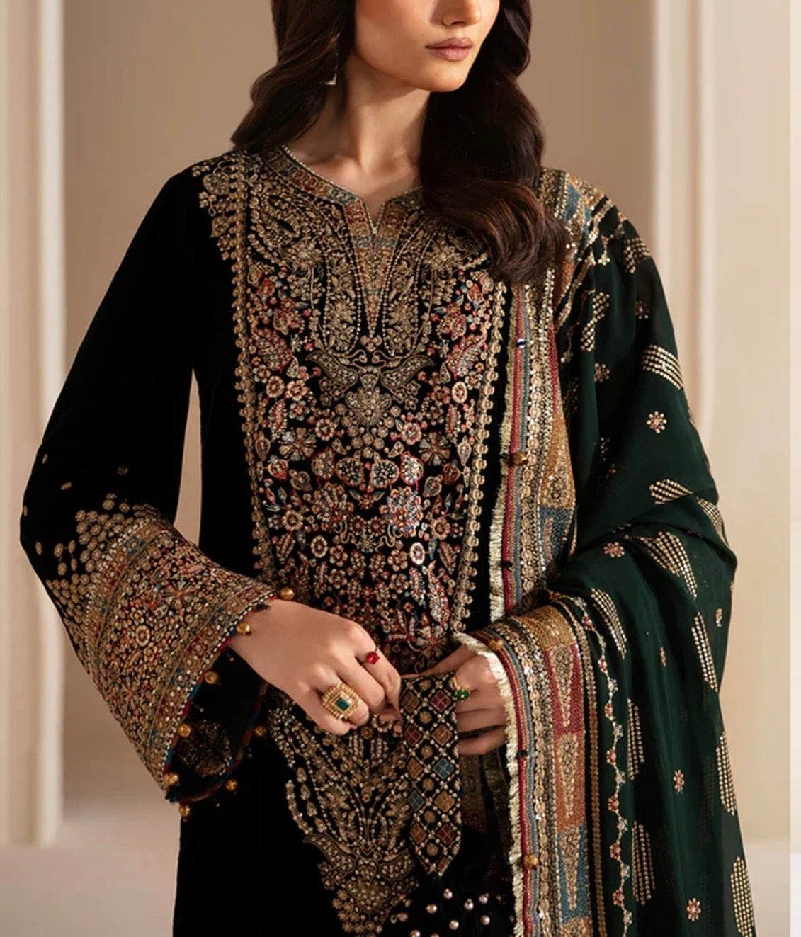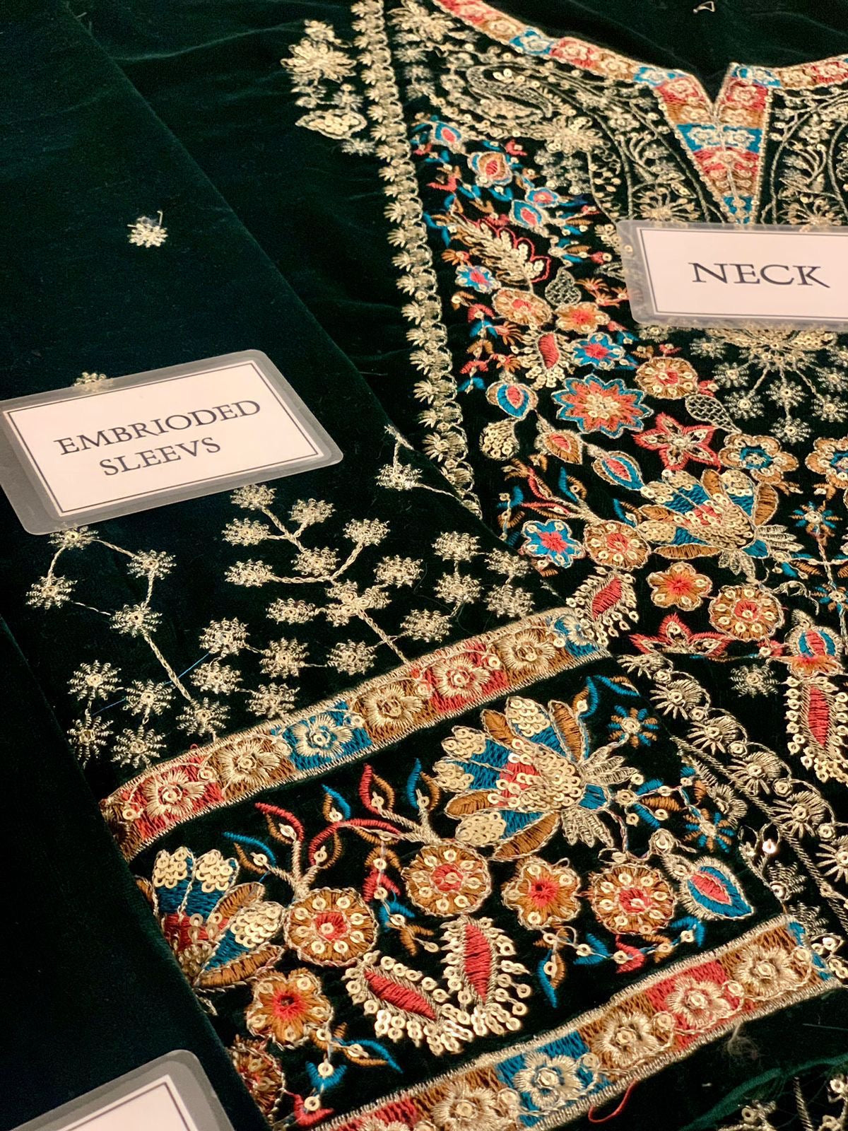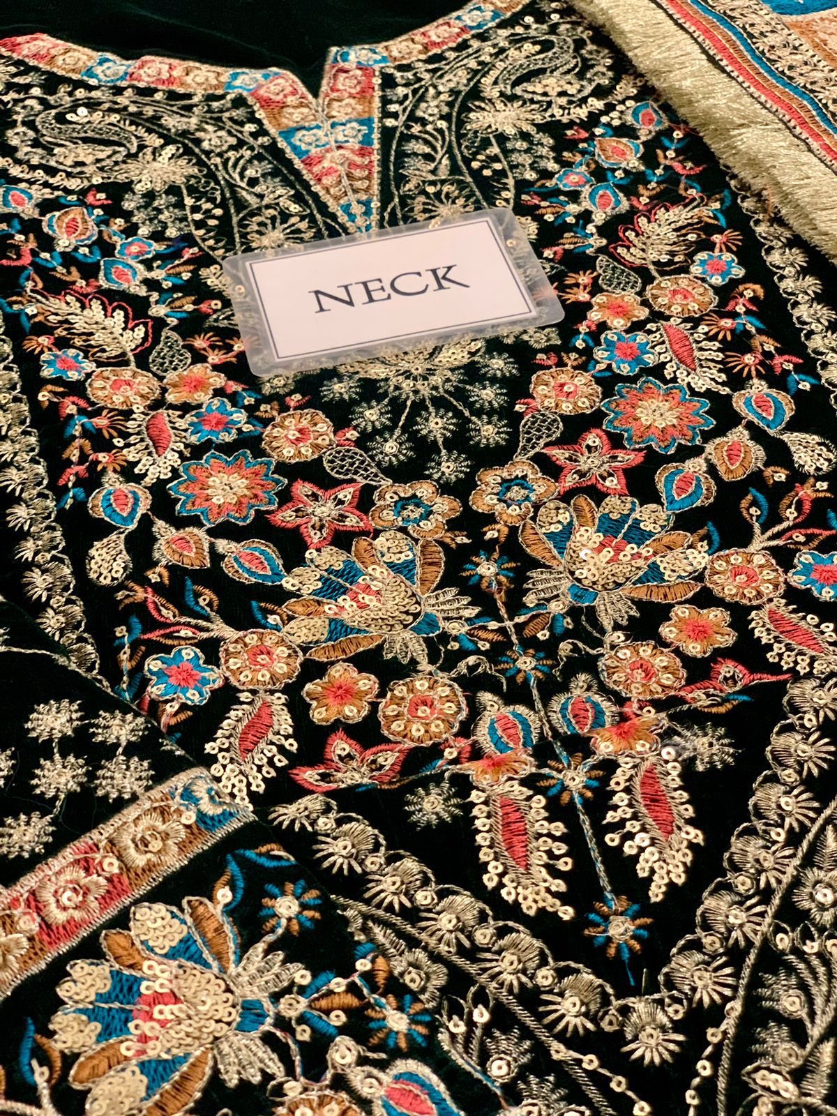 - Chiffon dupatta with 4-side embroidery, finished with mountain lace & tassels (ready to wear)