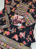 Stunning Shamos digital silk outfit, featuring a beautifully embroidered neckline with delicate thread & sequin work. Paired with a floral printed silk dupatta adorned with four-side heavy embroidery — a perfect blend of elegance & charm!