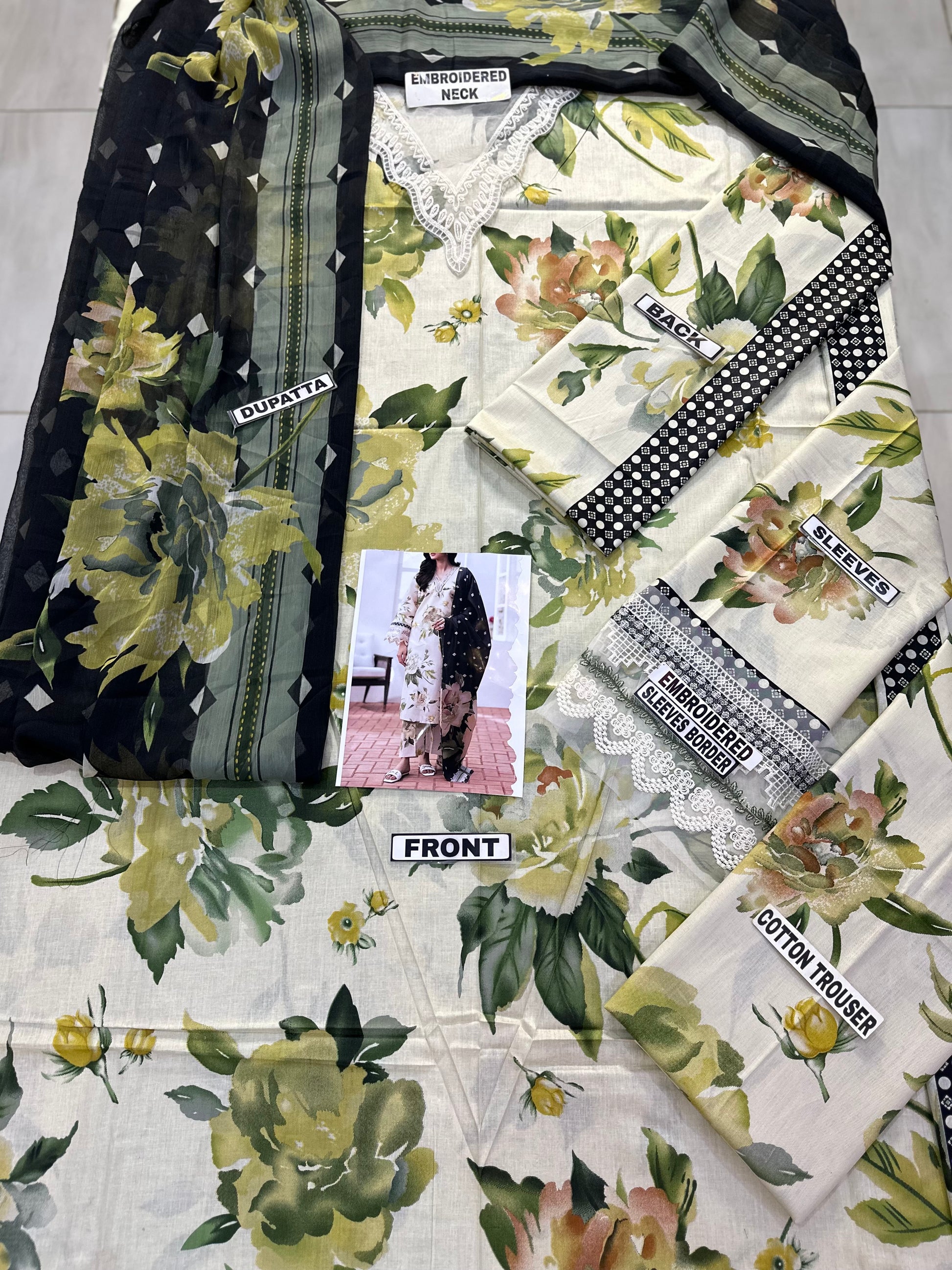 • Shirt: High-quality printed lawn with embroidered neck patch